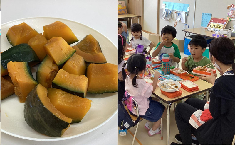 かぼちゃが苦手な子も一口チャレンジしてみると、美味しいことに気づいたようで、おかわりしていました😊