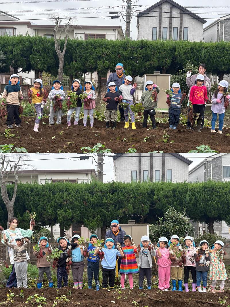 年長組さつまいも掘り 年長組さんのみんなで、畑にさつまいも堀りをしにいきました!土の中に埋まっているさつまいもを一生懸命引っ張る姿が見られました^ – ^ 子どもたちが掘ったさつまいもは持ち帰り、お家で楽しく調理して食べました。 « 前のページに戻る